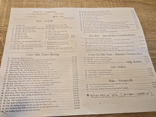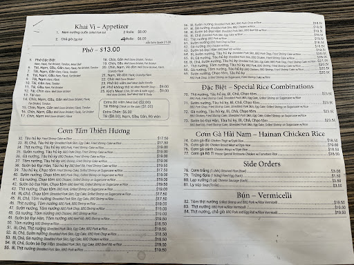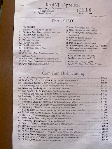 Com Tam Thien Huong’s menu offers a unique, satisfying dining experience that celebrates the best of Vietnamese flavors. Whether you're craving pho, rice dishes, or fresh vermicelli, there's something for everyone to enjoy!